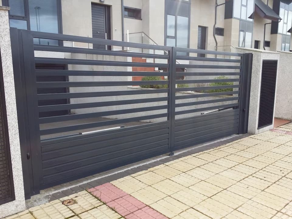 - Puertas batientes: Se abren hacia adentro o hacia afuera, perfectas para garajes y accesos peatonales.
